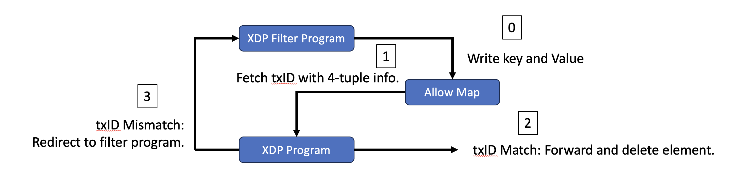 If the packet is valid, it will write the element into allow map with 4-tuple as key and DNS transaction ID as value.